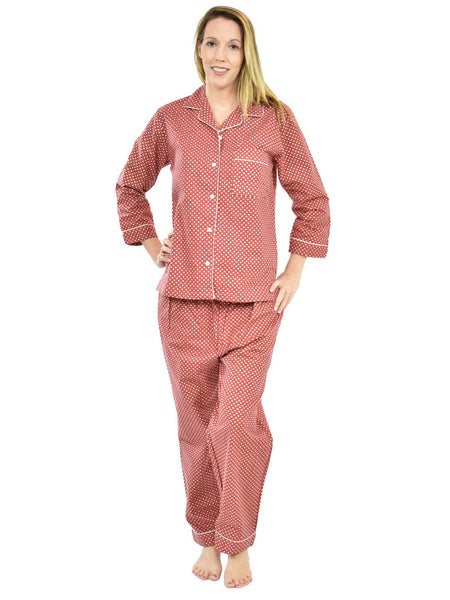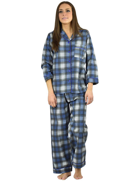 Our Women's 100% Cotton Flannel Full-Sleeve Pajama Sets with Piping are made from lightweight, brushed, preshrunk, premium 100% cotton flannel fabric that feels smooth and will keep you warm and cozy. Featuring an elastic waistband and drawstring for a secure fit and piping for a classic look, these women's pajamas come in small, medium, large, and extra-large sizes and are easily cared for with regular machine washing. You'll look and feel great and sleep well in these and our other women's pajamas.