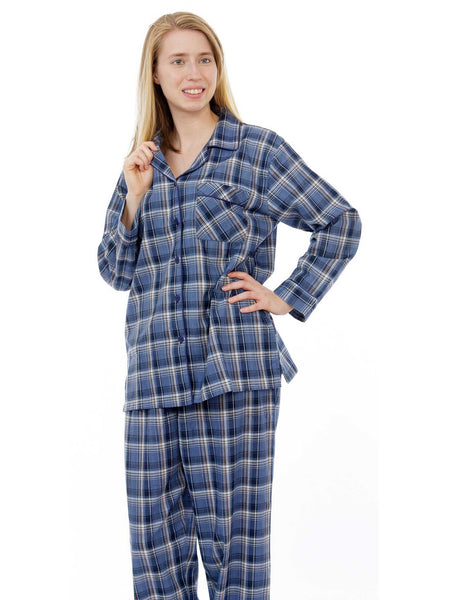 Our Women's 100% Cotton Pajamas are made of comfortable, lightweight, 100% cotton fabric. Featuring an attractive checkered pattern and a convenient front pocket, these women's pajama sets come in small, medium, large, and extra-large sizes and are easily cared for with regular machine washing. You'll look and feel great and sleep well in these and our other women's pajamas.